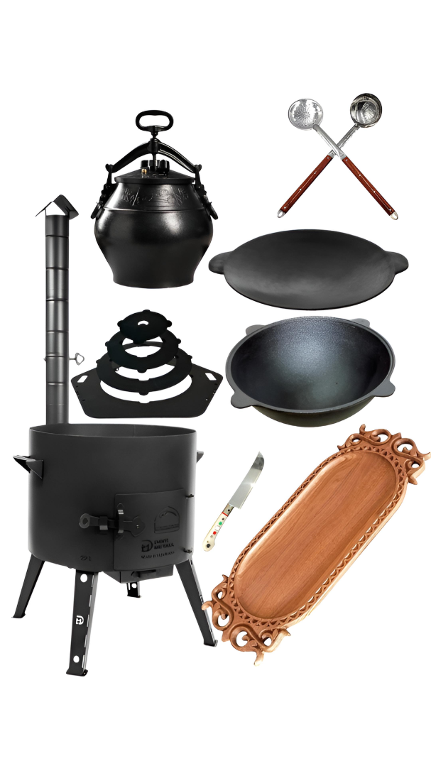Acest set este creat pentru cei care doresc mai mult decât un simplu vas de gătit. Prin combinația dintre sobă, ceaun, disc, ceaun afgan și accesorii utile, pachetul oferă libertate, varietate și confort în utilizare. Este o soluție completă pentru cei care apreciază gătitul autentic și vor să aibă la îndemână tot ce este necesar pentru preparate gustoase și servire frumoasă.