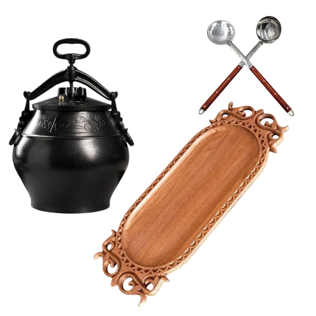 Setul complet de cazan afgan SB 30 este alegerea potrivită pentru cei care vor să cumpere nu doar un vas de gătit, ci un pachet bine gândit, util și frumos pentru servirea preparatelor.